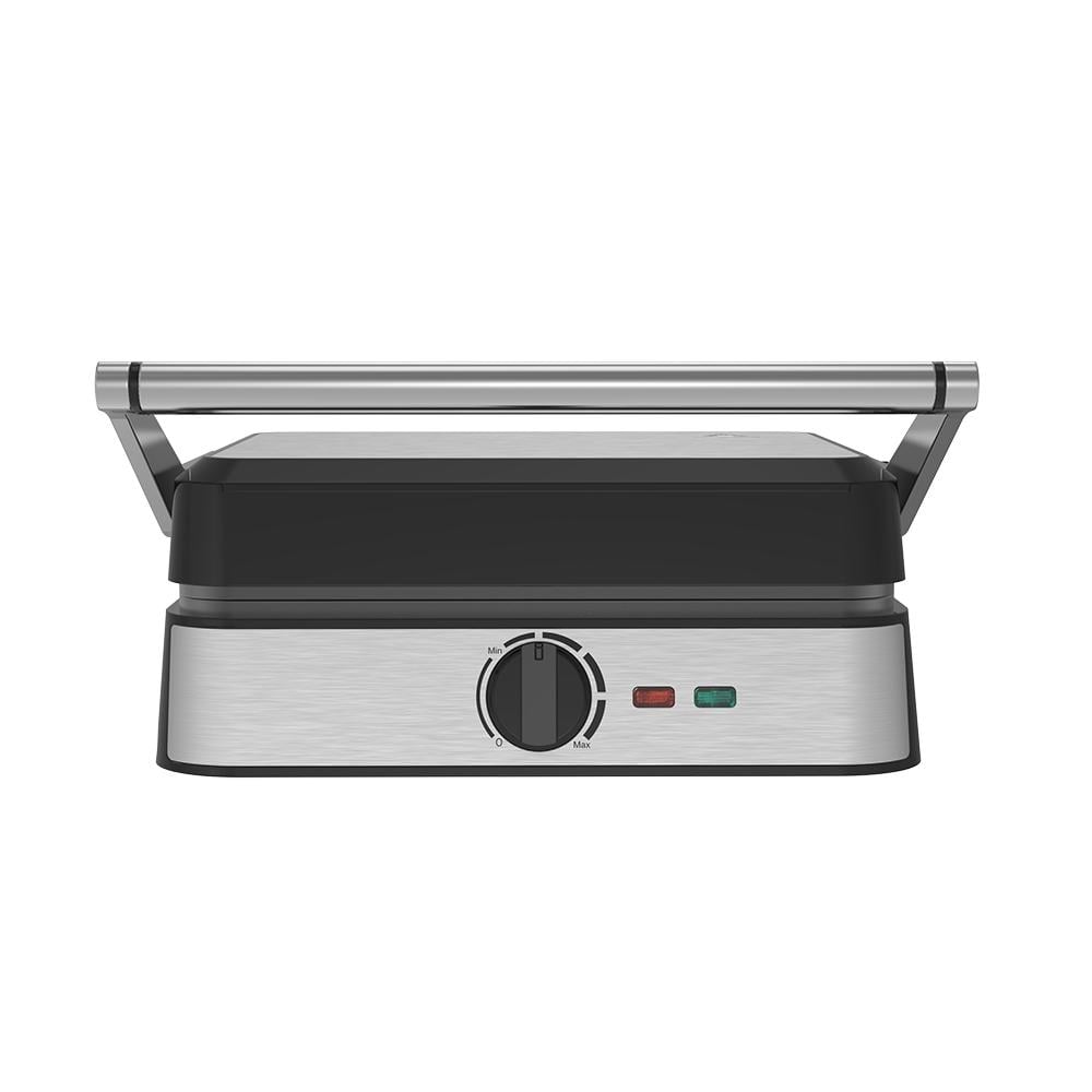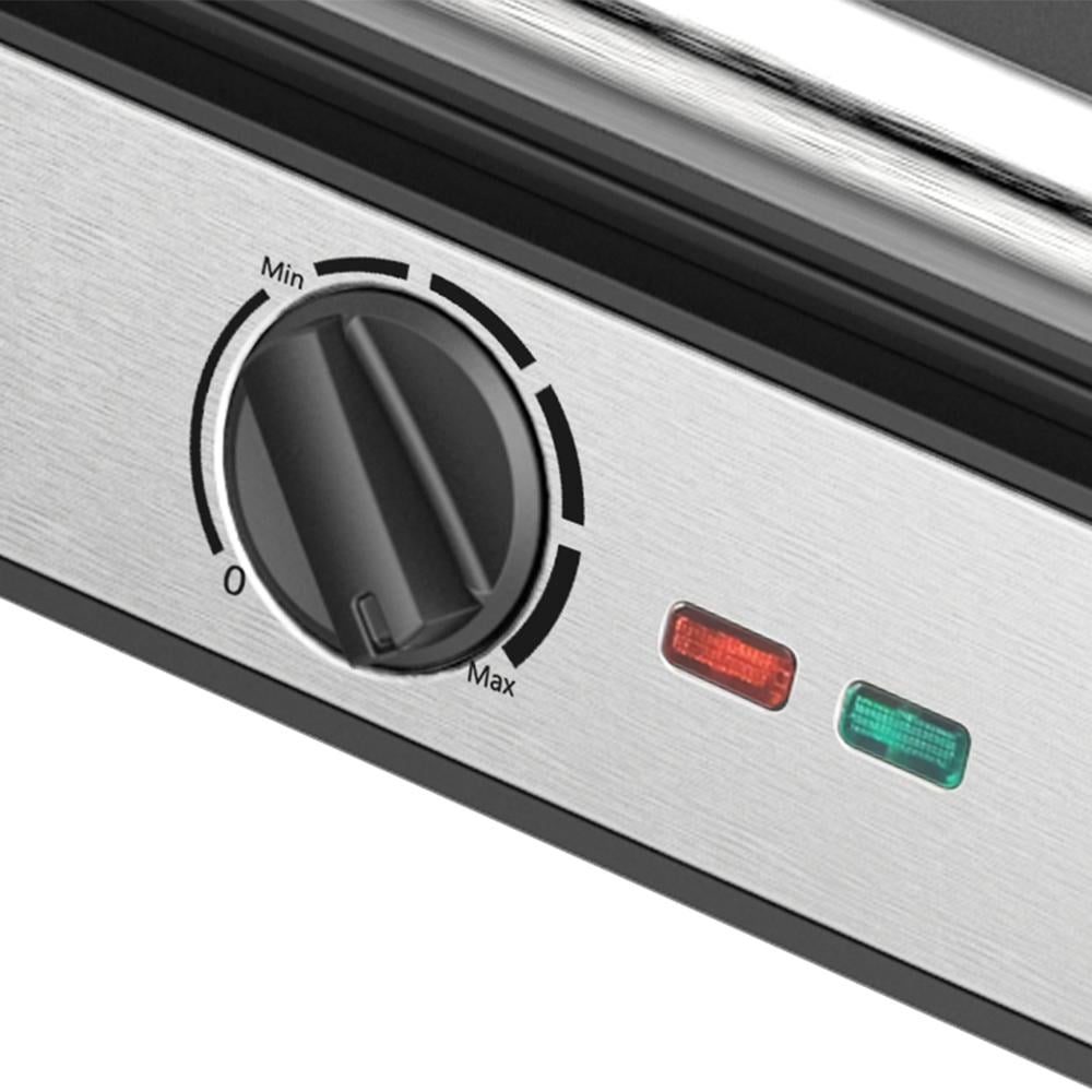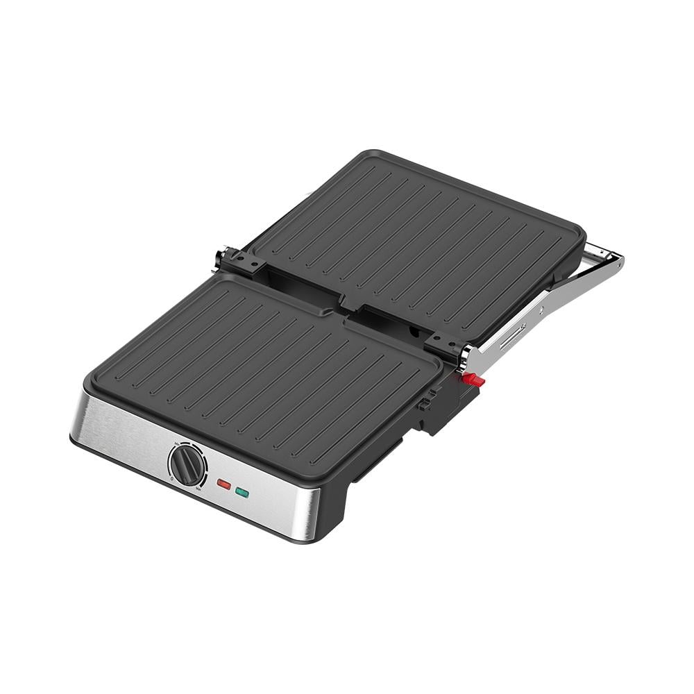 The Winning Star 2200W Multifunction Electric Grill features a double-sided non-stick cooking surface that makes preparing sandwiches, grilling, and pressing paninis quick and easy. Featuring a compact and elegant black design with a stainless steel front panel, it's the perfect addition to your modern kitchen.